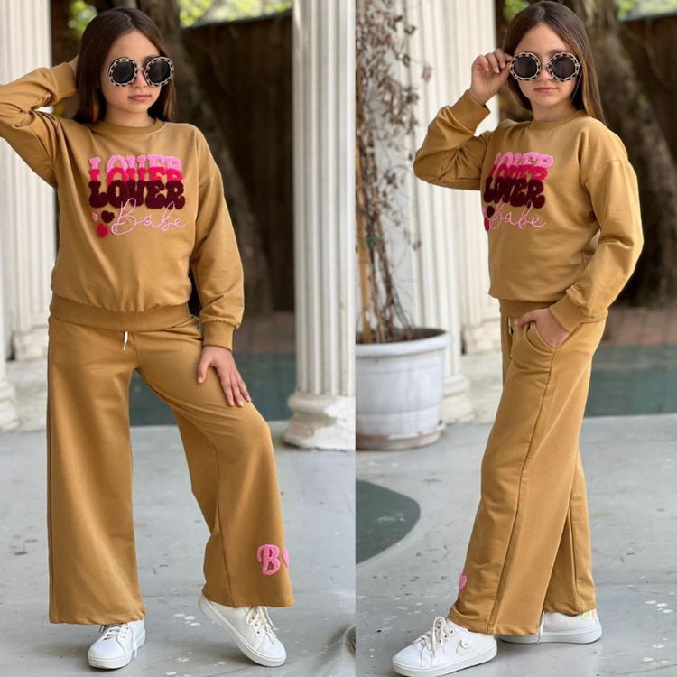 دللي أميرتك الصغيرة بهذا الطقم الأنيق والمريح المكون من قطعتين. يتميز بسويت شيرت ناعم مزين بطبعة "Loved Babe" الجذابة، مع بنطلون واسع يوفر حرية الحركة طوال اليوم. مثالي للإطلالات اليومية المليئة بالحيوية والنشاط