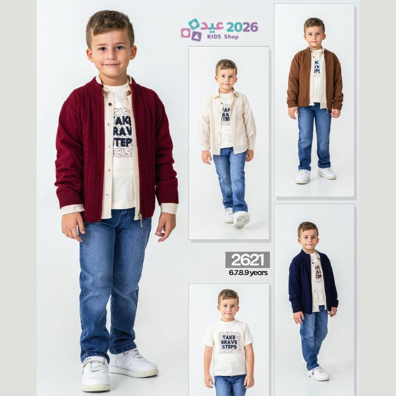 أيقظ الأناقة والراحة لطفلك مع هذا الطقم الكاجوال المميز! ✨ مصمم خصيصًا للأولاد الذين تتراوح أعمارهم بين 6 و 9 سنوات، ليمنحهم إطلالة عصرية ومريحة في آن واحد
