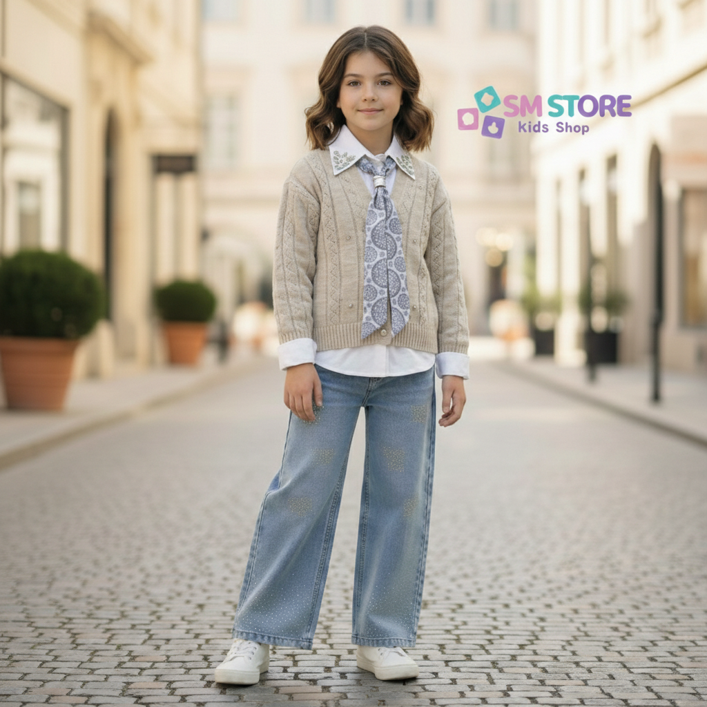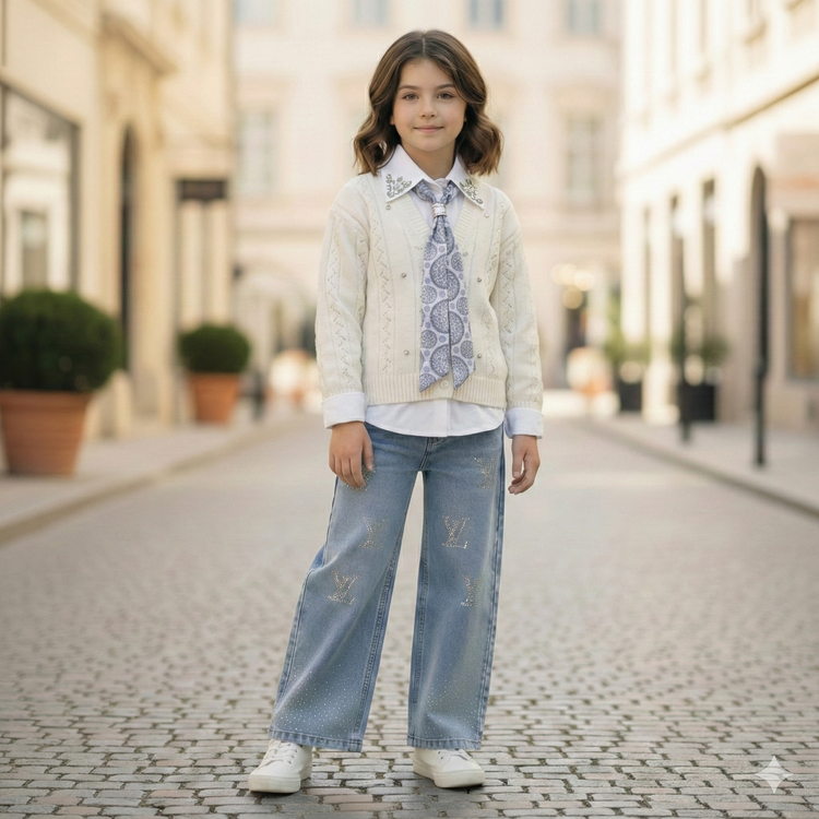 Découvrez le look Tendance et Chic avec notre ensemble casual 4 pièces pour filles (6-14 ans) ! 👧✨