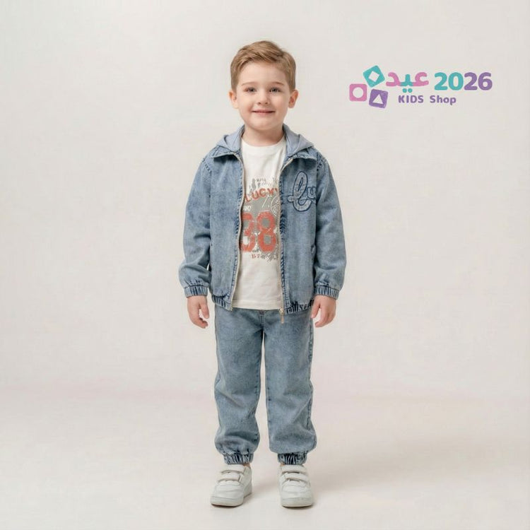 امنح صغيرك إطلالة عصرية ومريحة مع طقم الجينز الكاجوال الأنيق! 👦✨