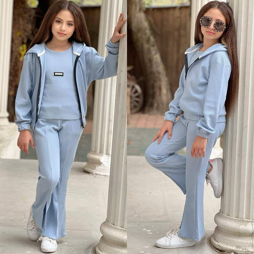 هذا الطقم المكون من ثلاث قطع للأطفال مناسب للأعمار من 3 إلى 10 سنوات. يتميز بتصميمه العصري والأنيق الذي يضمن الراحة والأناقة لطفلك