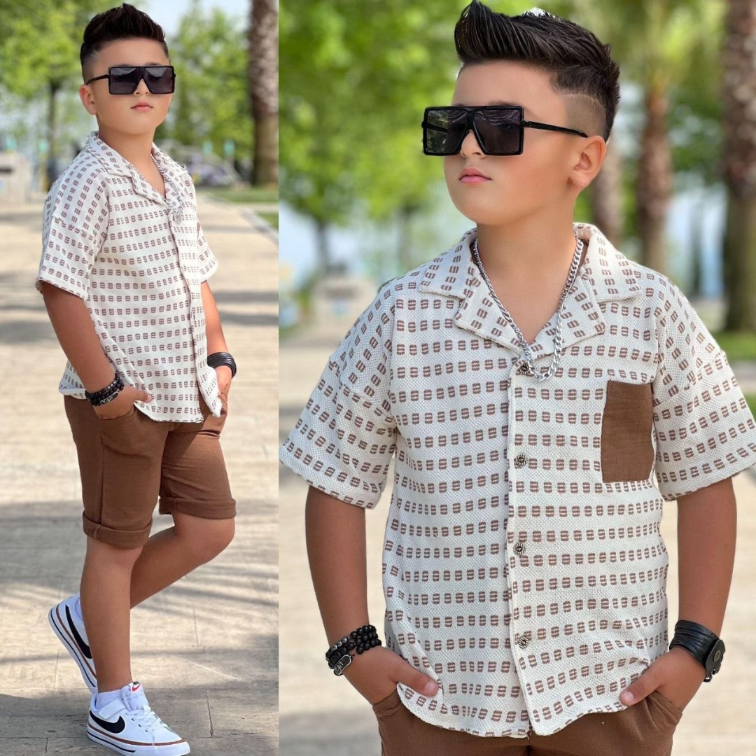 ارتقِ بمستوى أناقة طفلك هذا الموسم مع هذا الطقم الصيفي الفاخر. مصمم بعناية ليناسب الأولاد ذوي الذوق الرفيع من سن 5 إلى 14 عاماً. يجمع هذا الطقم بين المظهر الرسمي الأنيق والراحة اليومية، مما يجعله الخيار الأول للزيارات العائلية، حفلات أعياد الميلاد، أو جلسات التصوير الصيفية