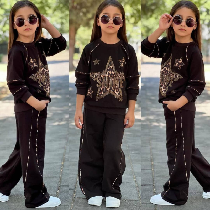 اجعلي صغيرتك تتألق بإطلالة عصرية ومريحة مع هذا الطقم الأنيق المكون من قطعتين، مصمم خصيصًا للفتيات بعمر 6-14 سنة