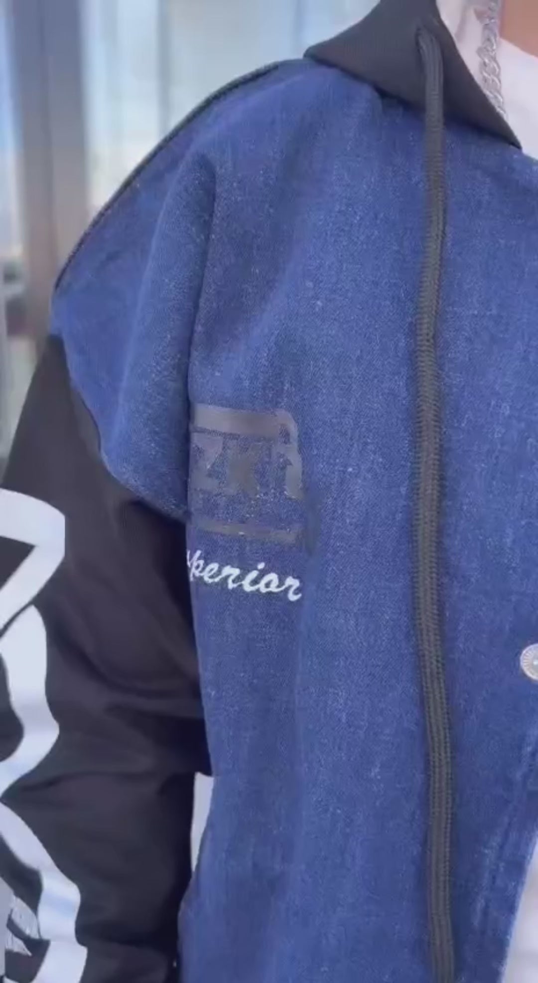 عدد القطع: ثلاث قطع (جاكيت جينز بغطاء رأس، تيشيرت داخلي، بنطال جينز)