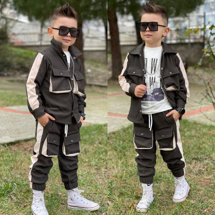 هذا الطقم الأنيق المكون من ثلاث قطع مثالي للأطفال من عمر 4 إلى 12 سنة. يتميز بتصميمه العصري وألوانه الزاهية التي ستضفي لمسة من البهجة على إطلالة طفلك