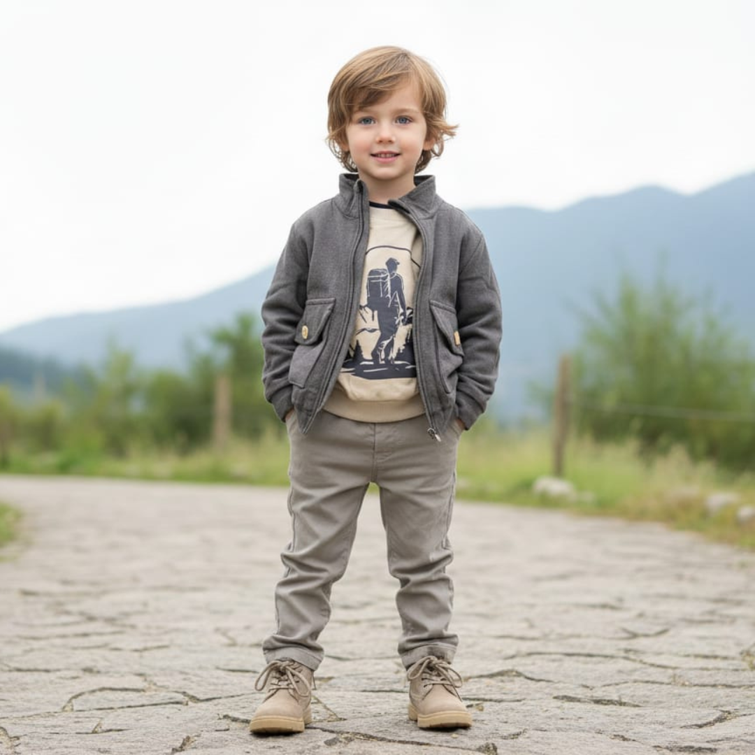 طقم أنيق وعصري مكون من ثلاث قطع، مصمم خصيصًا ليناسب طفلك من عمر 3 إلى 12 سنة. يضفي هذا الطقم على طفلك مظهرًا أنيقًا وعصريًا في نفس الوقت، وهو مثالي لمختلف المناسبات.