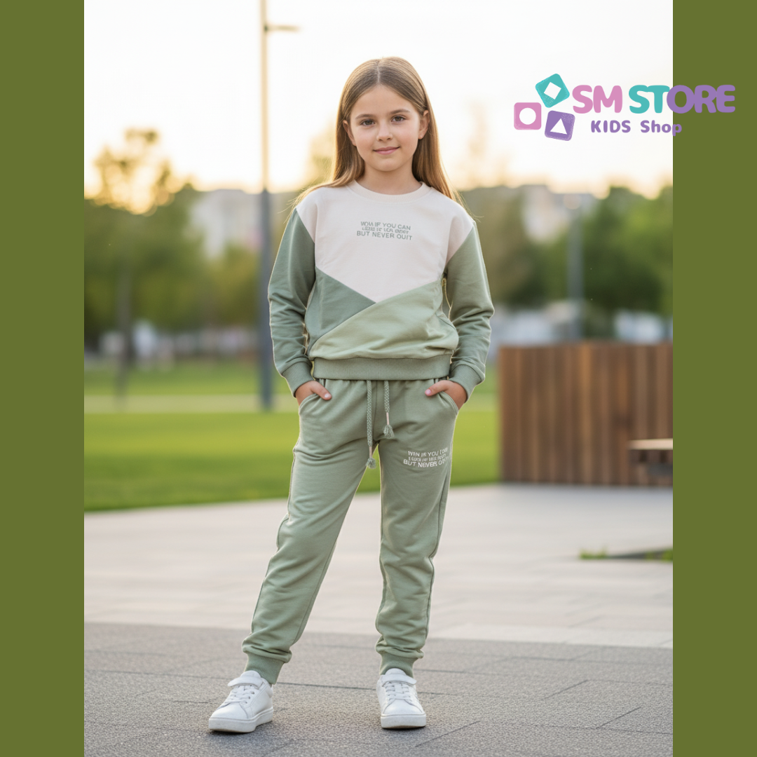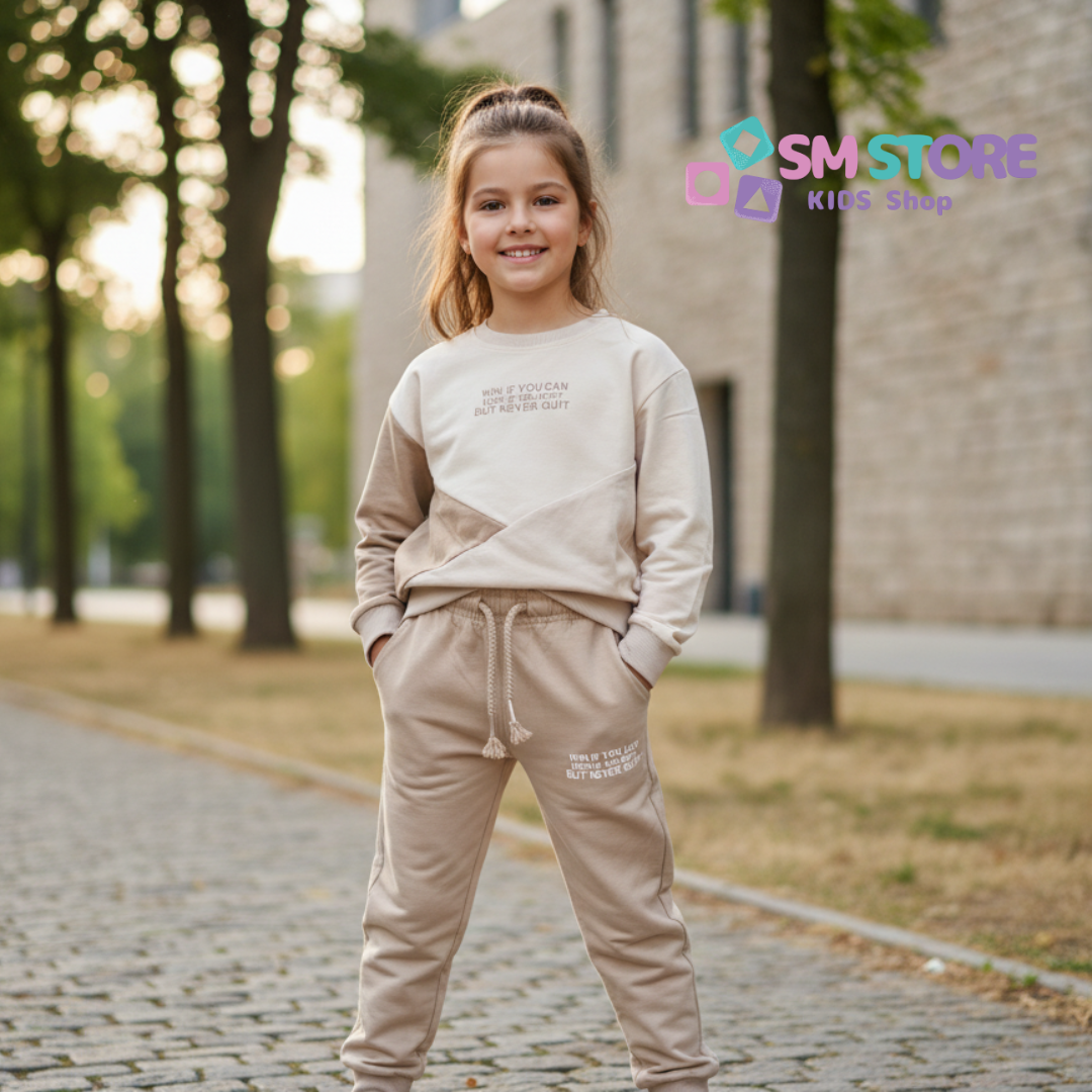 Découvrez notre ensemble de jogging deux pièces, conçu pour le style et le confort des jeunes filles de 4 à 16 ans ! 👧✨